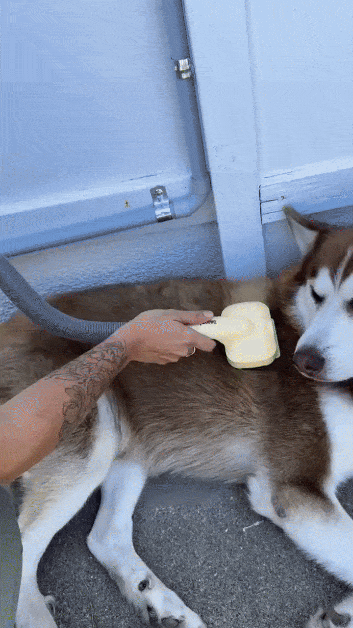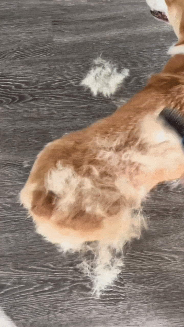 Groomly™ works for both dogs and cats, especially breeds that shed heavily. Always use the appropriate brush head and gentle pressure for smaller or more sensitive pets.