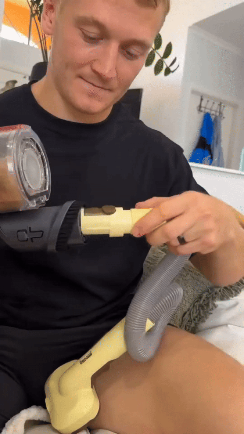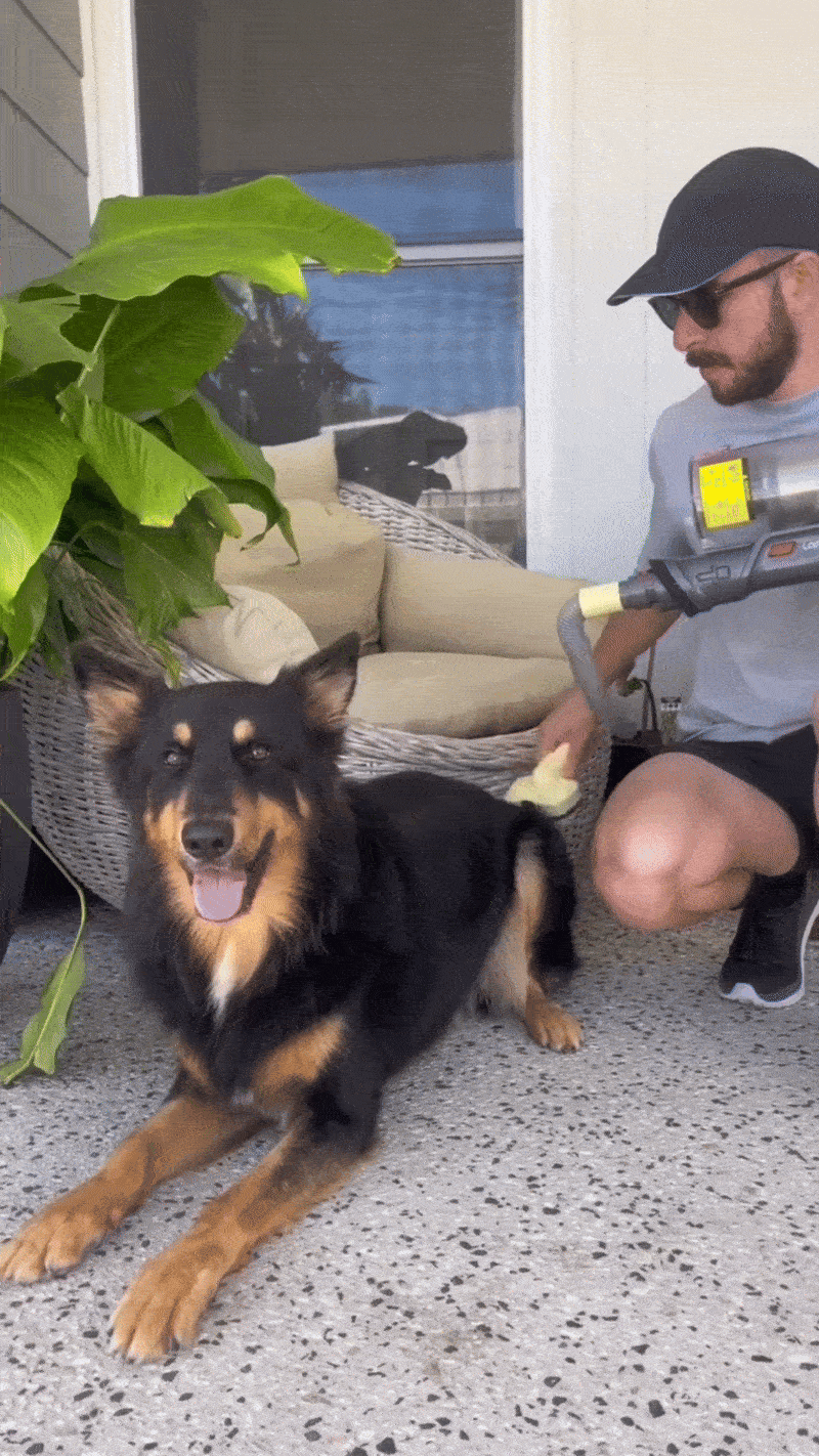 It’s no louder than your regular vacuum. Most dogs adjust quickly, especially since grooming is calm and controlled. For nervous pets, we recommend starting on a low vacuum setting.